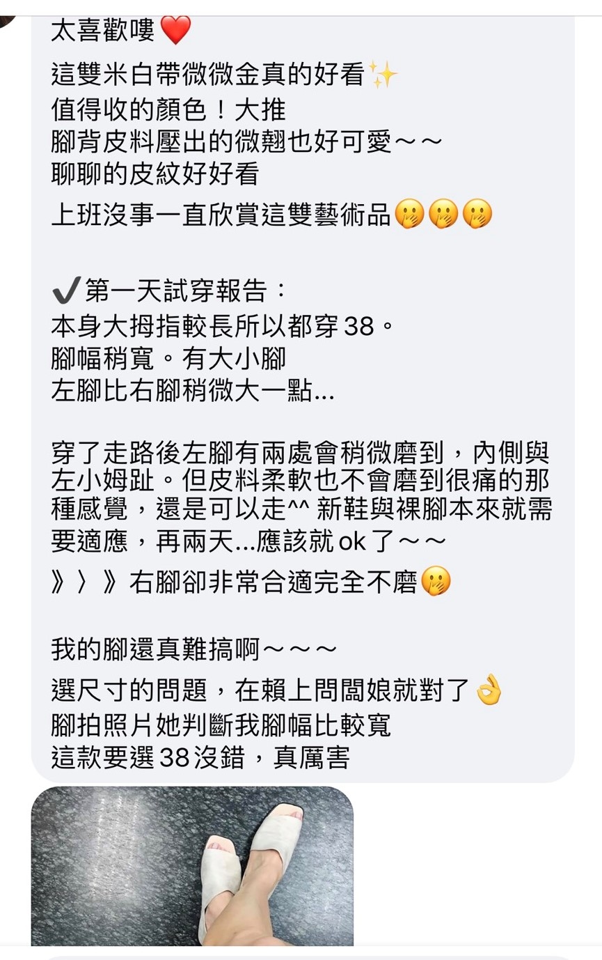 同事A平常穿23.5(37)或24(38),腳板瘦但稍微寬一些,穿38較合適